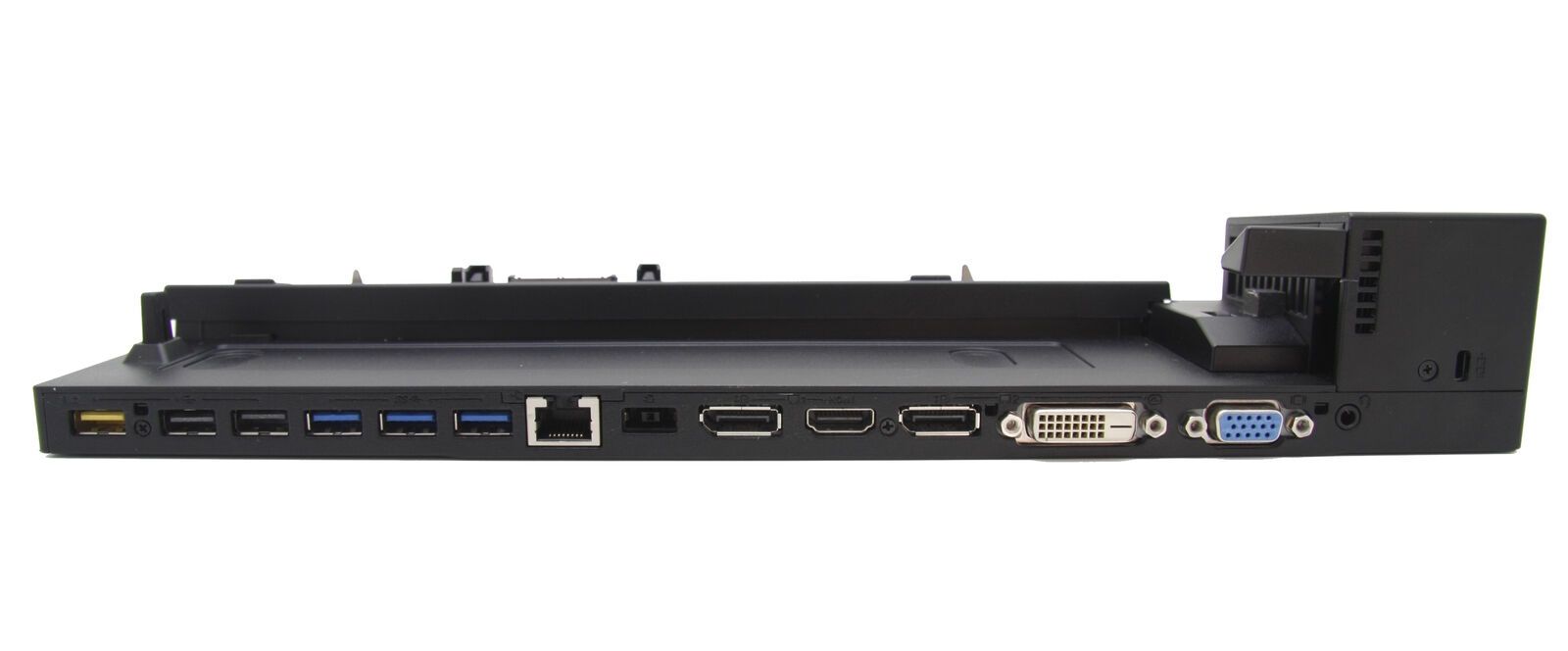 La estación de acoplamiento ThinkPad Ultra reduce la carga de trabajo y amplía las posibilidades sin ocupar más espacio. La ThinkPad Ultra Docking Station es la última estación de acoplamiento de 90 W, con una gran cantidad de entradas de video, como HDMI 1.4, y soporte para múltiples pantallas externas, lo que permite a los usuarios realizar múltiples tareas como nunca antes. Incluye 3 puertos USB 2.0, uno con Always-On USB para cargar dispositivos móviles. La base está equipada con 3 puertos USB 3.0 para conectar discos duros y otras unidades de almacenamiento externas. Esta estación de acoplamiento ThinkPad también admite una conexión Gigabit Ethernet 10/1000 e incluye 2 puertos DisplayPort 1.2 y 1 DVI-D, 1 HDMI 1.4 y 1 puerto VGA. Algunos puertos de video son de uso exclusivo y también dependen de la configuración del ThinkPad en el dock. La base viene sin un adaptador de CA de 90 W. La base no requiere un controlador, pero ofrece una calidad de video nítida gracias a la tecnología de Lenovo. También incluye 1 puerto de audio combinado estéreo/micrófono para conexión de auriculares/altavoces/micrófono. Puertos e interfaces Tecnología de conectividad: acoplamiento Número de puertos USB 2.0: 3 Interfaz de anfitrión: USB 2.0 Número de puertos USB 3.0 (3.1 Gen 1) Tipo A: 3 Número de puertos LAN Ethernet (RJ-45): 1 Número de puertos HDMI: 1 Micrófono, entrada de línea: No Puerto(s) VGA (D-Sub): 1 Número de DisplayPort: 2 Puertos DVI‑D: 1 Conexión para adaptador de red: Sí Red Ethernet LAN 10,100,1000 Mbit/s Medios de almacenamiento: Lector de tarjetas de memoria integrado Voltaje de entrada de CA: 100-240 V Frecuencia de entrada de CA: 50/60 Hz Consumo de energía típico: 90 W Color del producto: negro Opción de fijación para bloqueo de cable: Sí Adaptador incluido: No † Diseñado para Lenovo